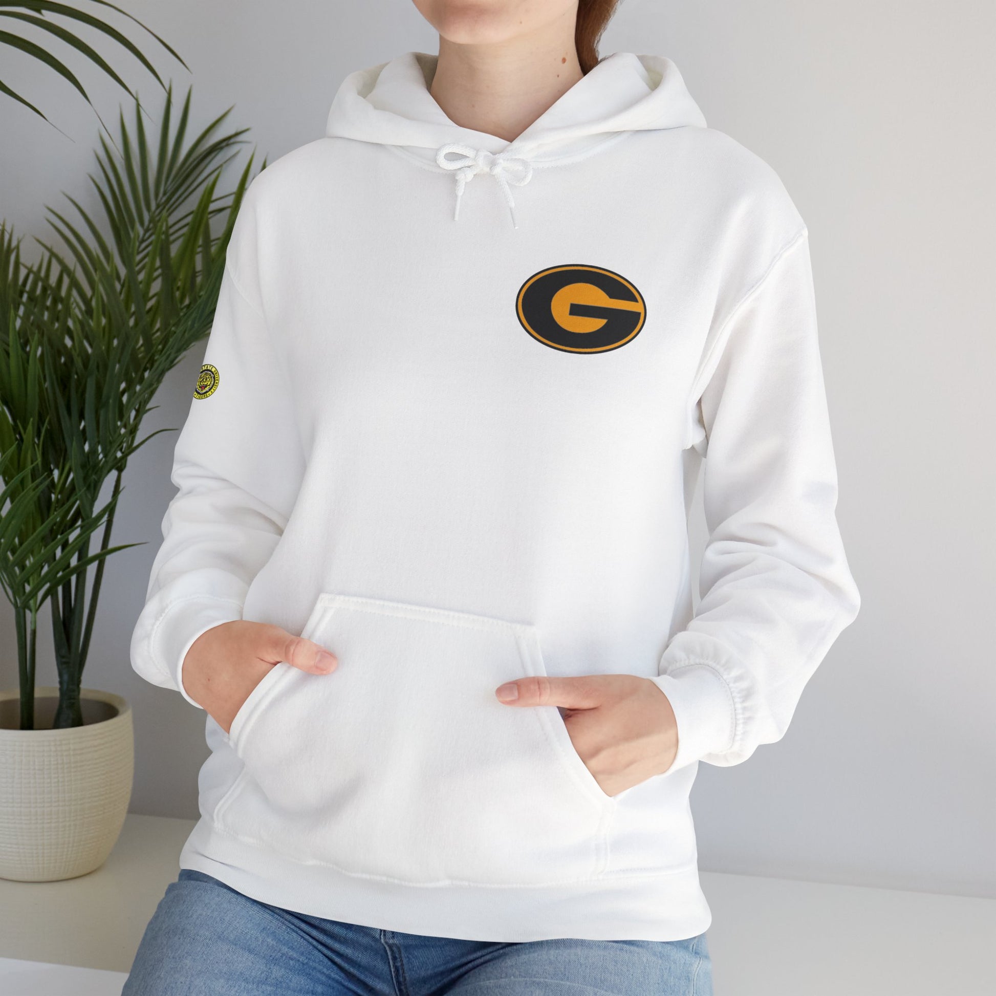 This unisex heavy blend hooded sweatshirt is relaxation itself. Made with a thick blend of cotton and polyester, it feels plush, soft and warm, a perfect choice for any cold day. In the front, the spacious kangaroo pocket adds daily practicality while the hood's drawstring is the same color as the base sweater for extra style points.